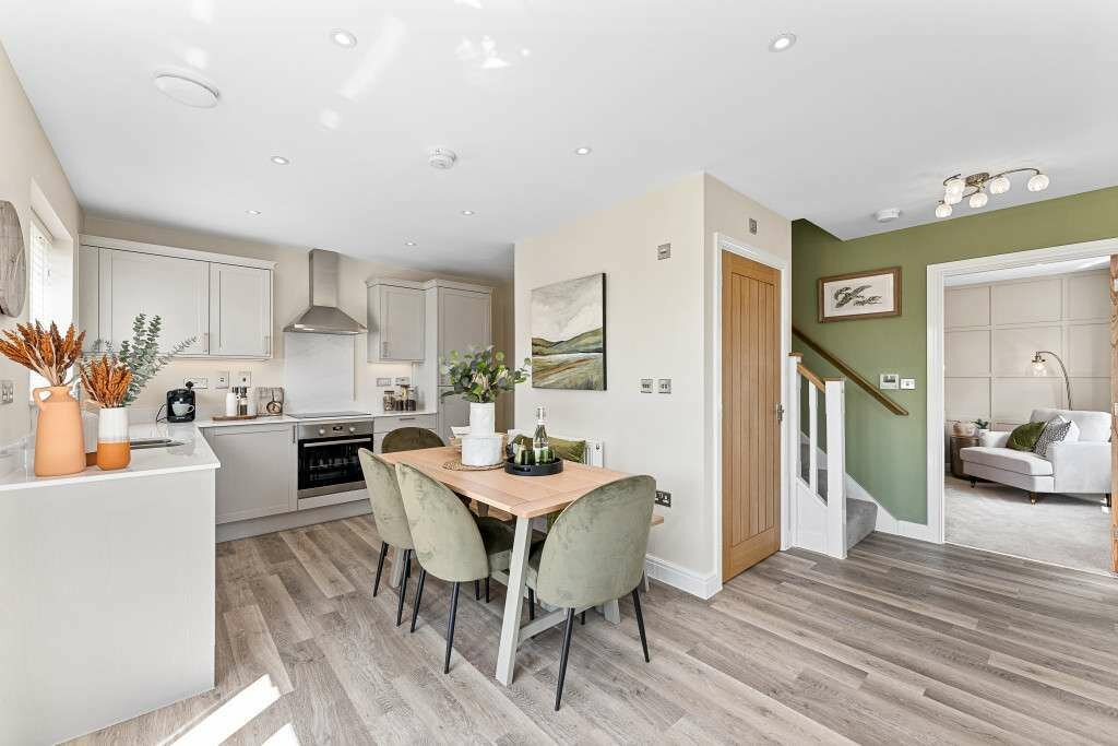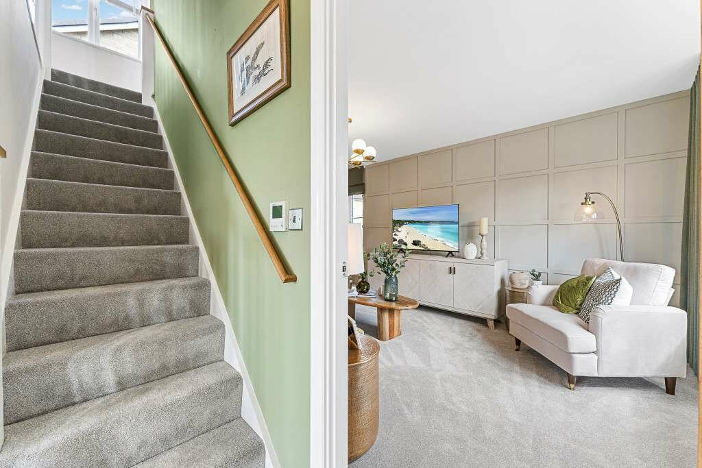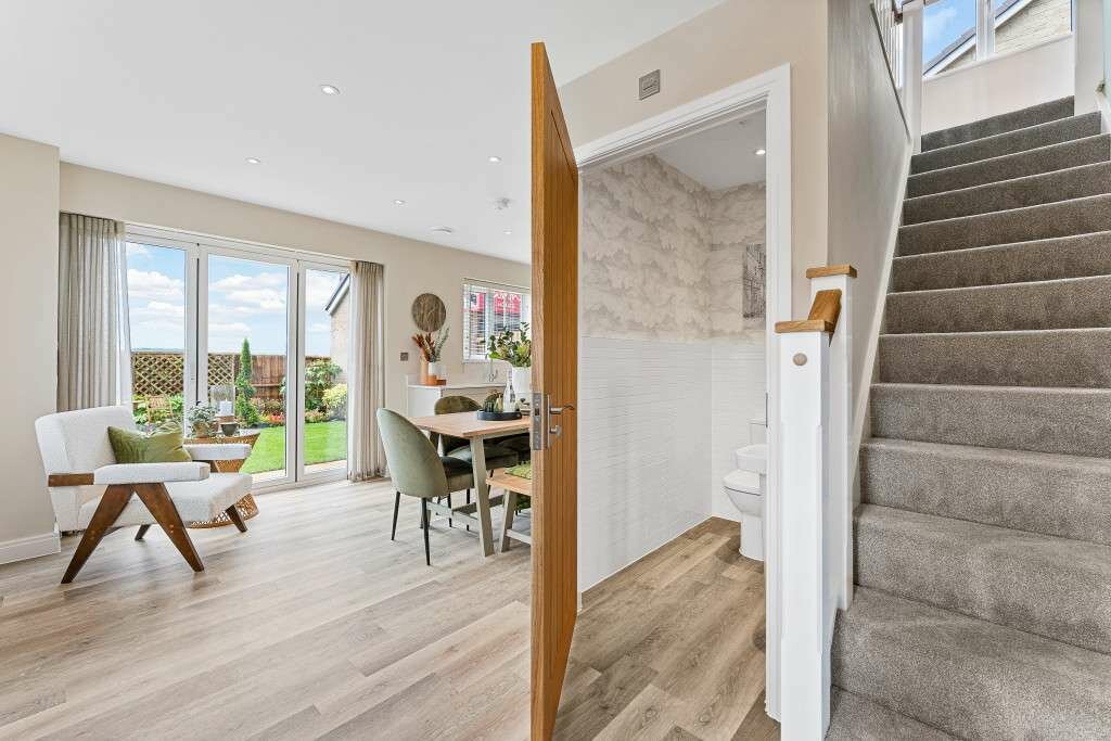 Designed with modern family living in mind, the layout of the open plan kitchen/dining room allows you to keep a close eye on homework duties, while catching up over a cuppa with friends and family. This flexible open plan space offers you an area to comfortably work from home, without impacting on your family living space. French doors lead to the garden, creating a light, bright and airy home. You’ll also find handy storage underneath the stairs, to hide away the less glamorous parts of your home.