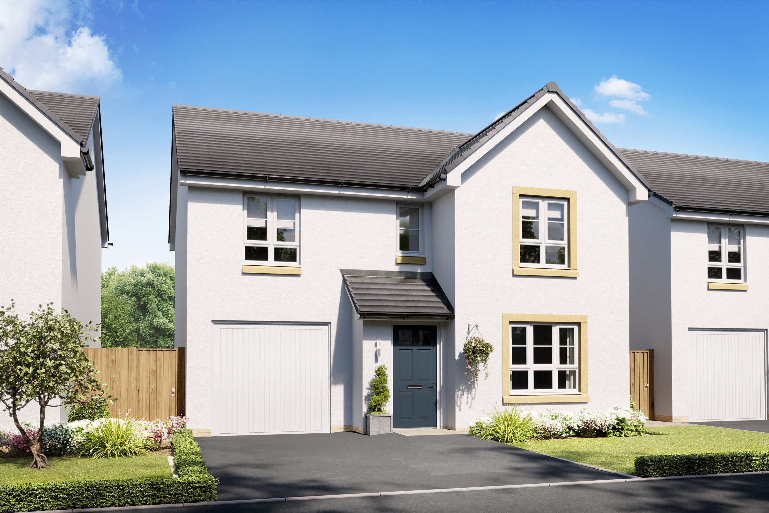 As you enter the home you will find a spacious lounge overlooking the front garden. Further down the hall, you will find an open-plan kitchen/dining/family area with French doors out to the back garden. A useful utility room and WC can also be found on the ground floor. All four double bedrooms are upstairs, with the main bedroom benefiting from an en suite, as well as a family bathroom. Barratt @ West Craigs is a new community of family homes in north-west Edinburgh. There are plenty of local amenities nearby and on site; there will be a new school, health centre and nursery. The development is situated near the City Bypass which connects to other main road links across the central belt. There are also plenty of regular bus, tram and train services within easy reach.