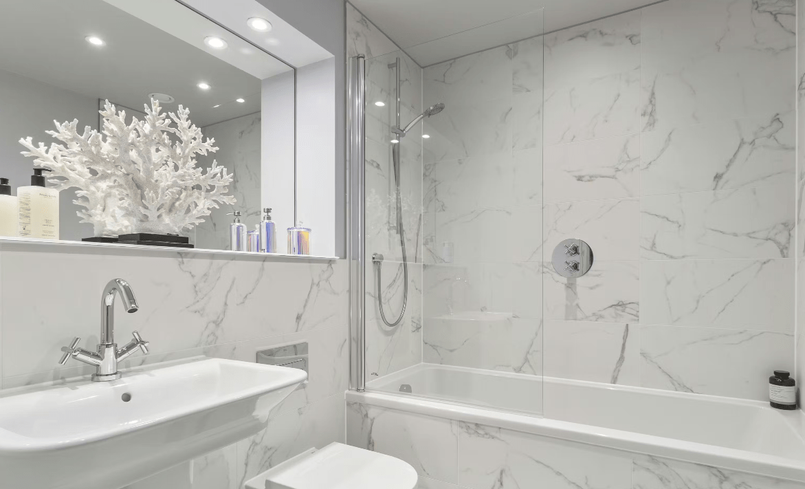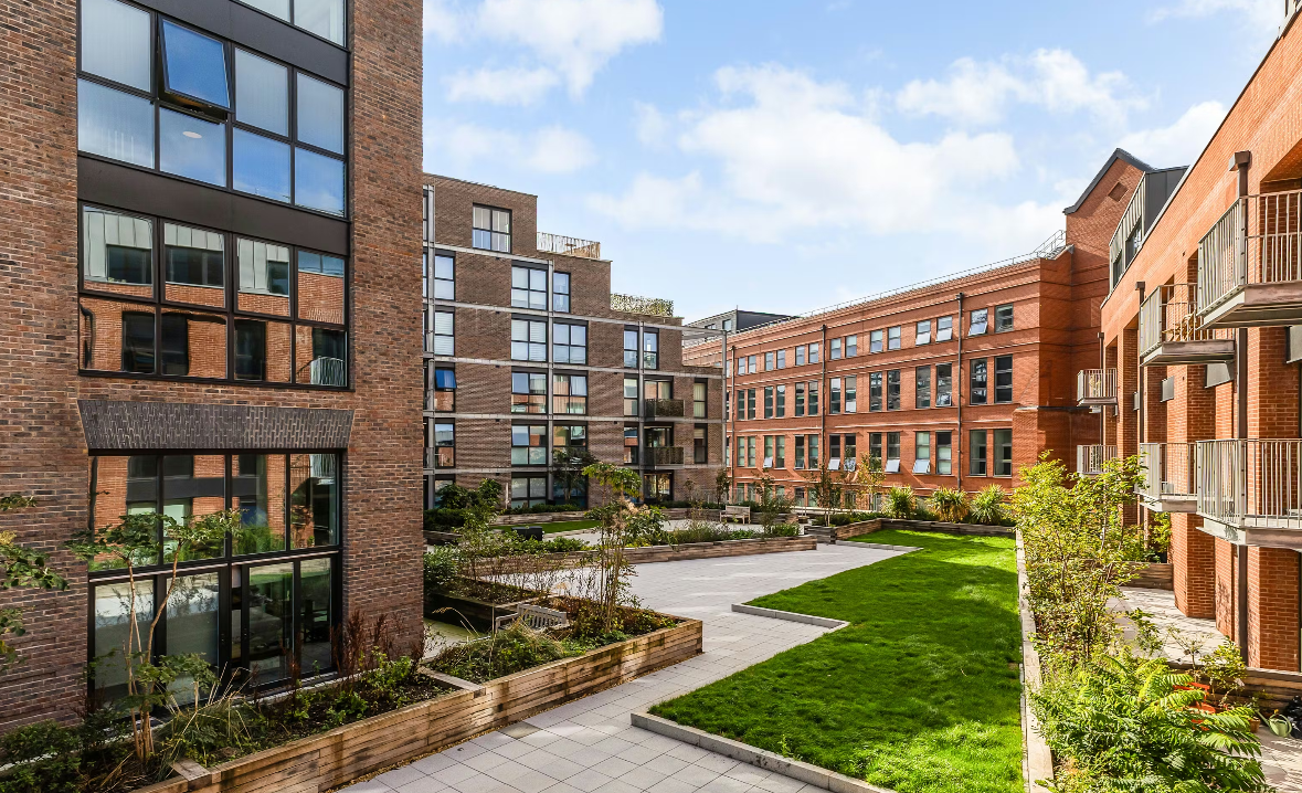 The principal bedroom includes fitted wardrobes and a sleek ensuite, while the second bedroom offers excellent flexibility as a guest room, home office or creative space. With a high-quality, fully inclusive specification throughout, alongside the added benefits of a parking space, concierge service and access to private landscaped gardens, this apartment delivers modern city living within a unique historic setting.