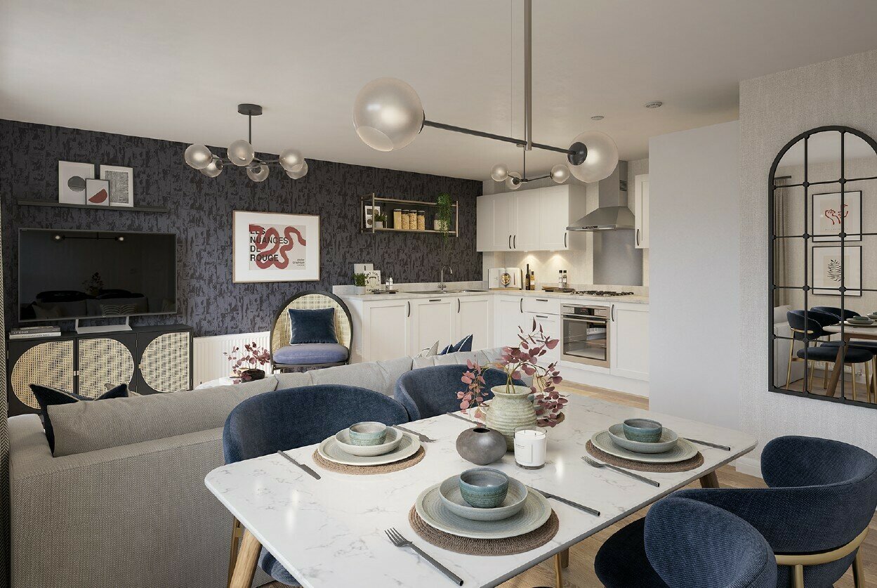 - Open-plan dining/kitchen/living