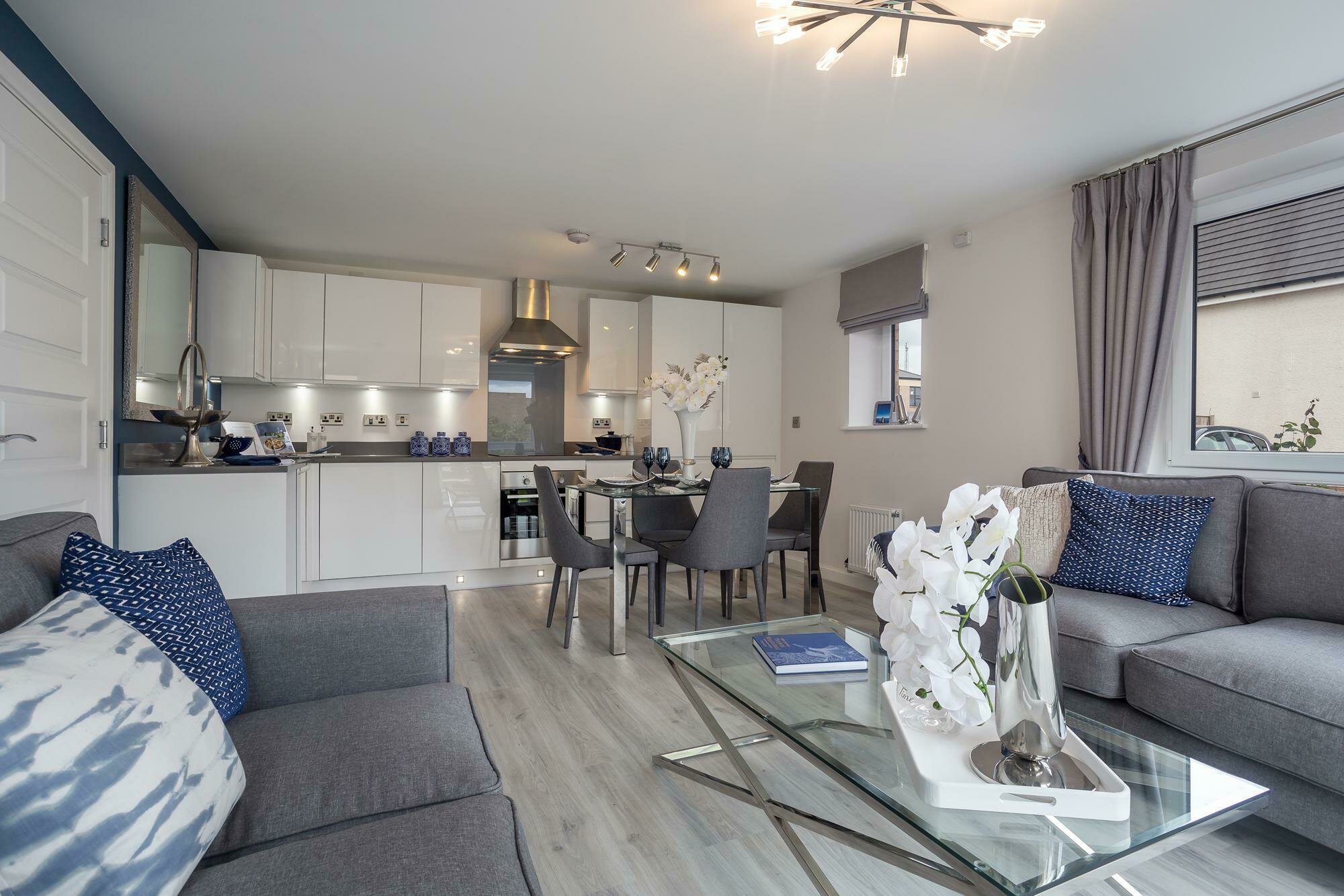 A spacious entrance hallway with a storage cupboard and utility space, leads on to all the rooms within this apartment. An open-plan living space combines the lounge, kitchen and dining area, making it a great spot for entertaining family and friends. Two double bedrooms, with the main featuring an en suite and a full bathroom completes The Tima.