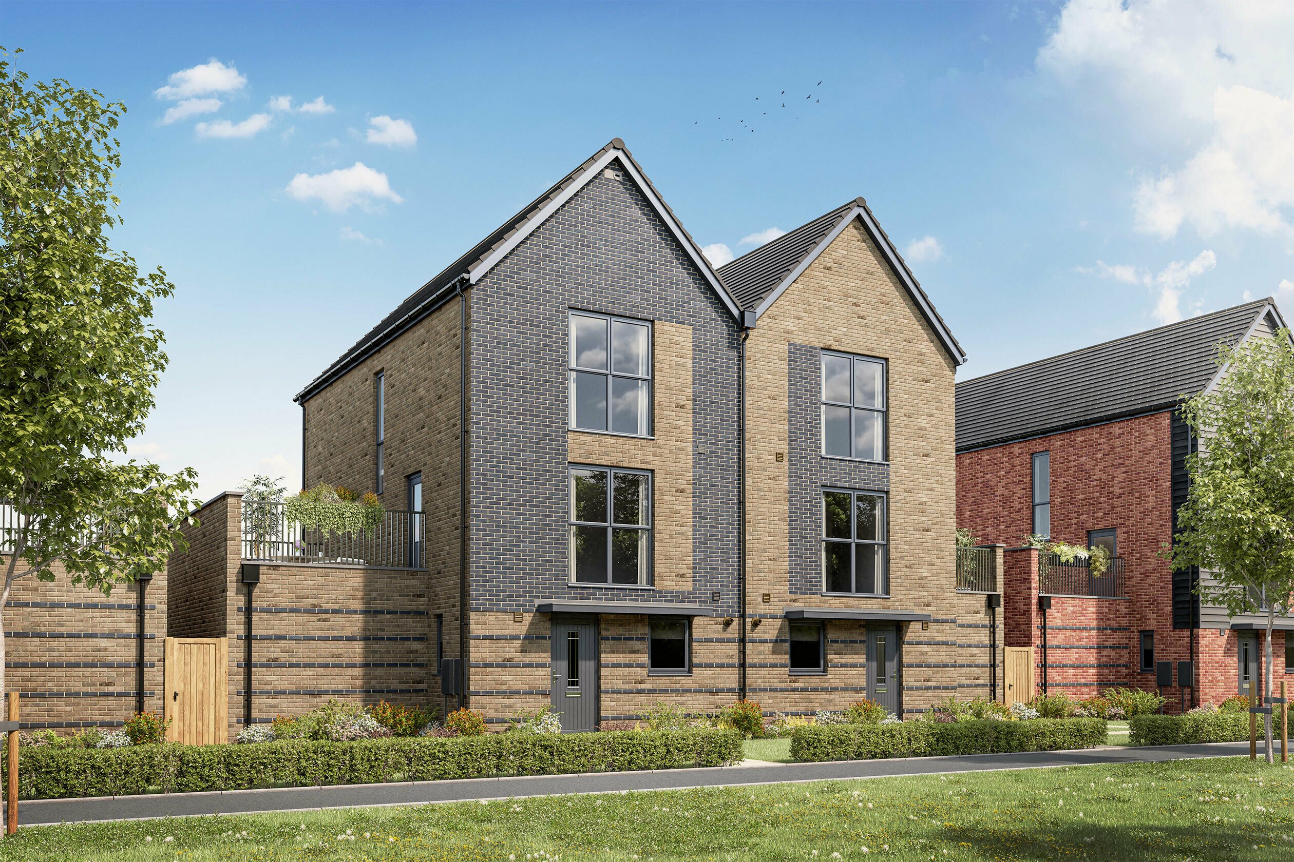 Key worker? We’ll contribute 24,499 towards your deposit. Brand new home with photovoltaic SOLAR PANELS and EV CHARGER. Plot 118 | The Oak | Wichel Fields @ Wichelstowe, Swindon | Barratt Homes. This home has an open plan kitchen dining area with French doors to the garden. There’s also a downstairs cloakroom and some understairs storage. Upstairs you’ll find a lounge with a balcony, a double bedroom, a single and the family bathroom A further two double bedrooms both with en suites completes the top floor. This home comes with a garage with EV charger and two parking spaces. PEACE OF MIND WHEN BUYING NEW: ENERGY SAVING technologies included, meaning you could enjoy lower bills. COMPREHENSIVE WARRANTY for added reassurance. Need help with your mortgage? We can put you in touch with a New Build MORTGAGE BROKER.