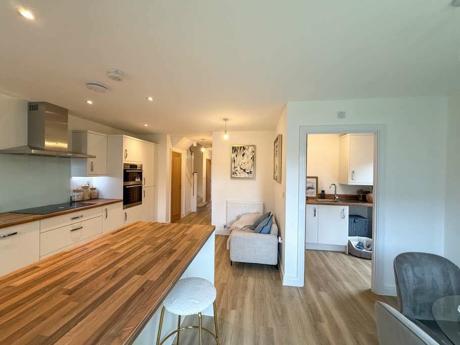 Off the hallway you’ll find a spacious lounge, with plenty of room to relax in after a busy day. An open plan kitchen/dining room offers a spacious wall to wall kitchen to maximise storage space and a breakfast bar for all the family to sit together before the day starts.