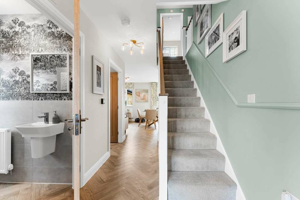 On the ground floor is an open hallway, which leads to an open plan kitchen with a sociable family and dining area. This is a light and bright space, with bi-fold doors leading into your garden. You won’t find yourself short of storage space, thanks to the separate utility room and understairs storage. You’ll find plenty of space for the whole family to relax in the lounge after a busy day.