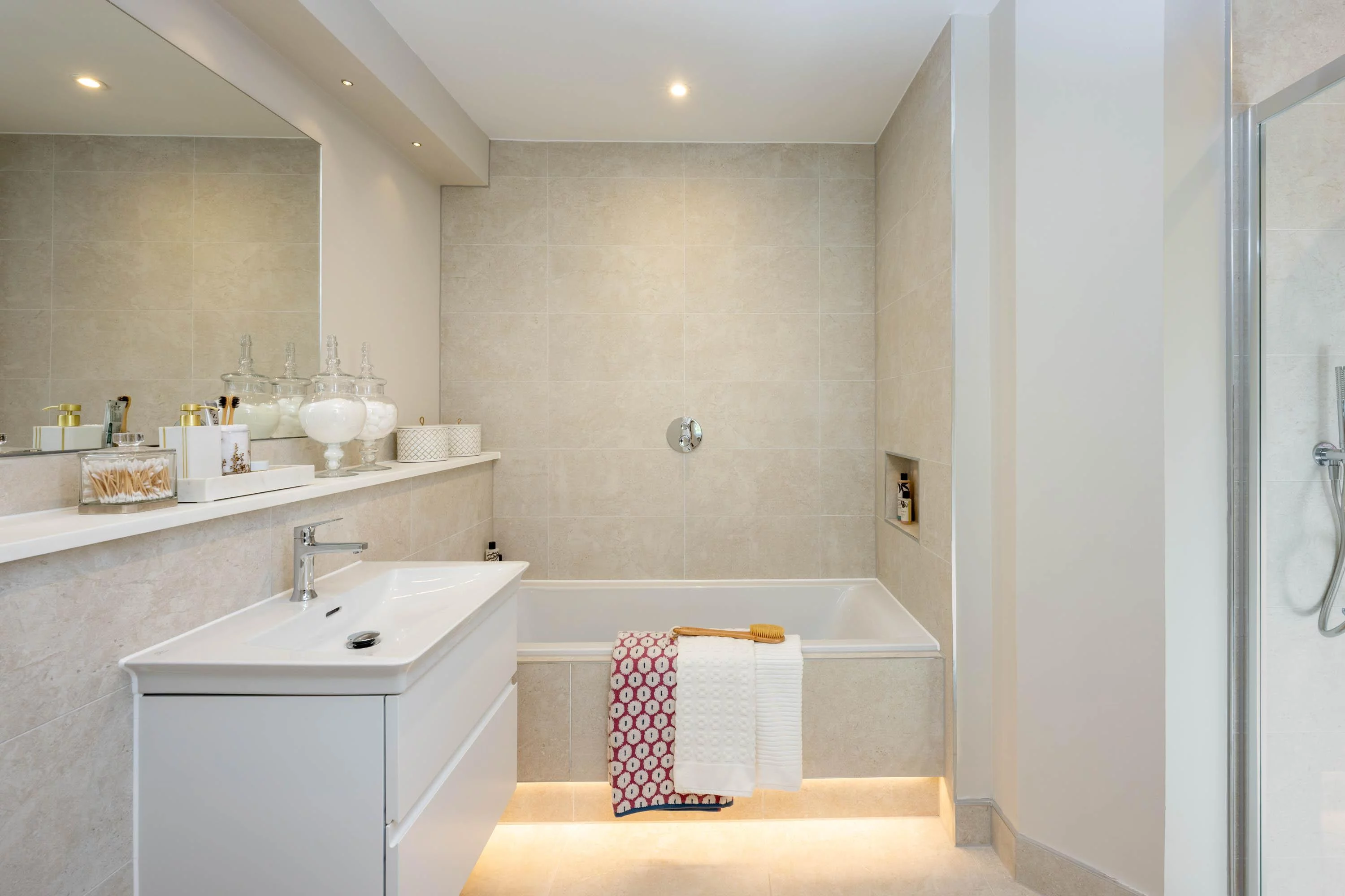 This three bedroom detached house, offers plenty of contemporary charm. The ground floor has a bright living room with a bay window overlooking the garden and a spacious separate kitchen/dining room. This floor also has a bathroom and under the stairs storage cupboard. There is also a large garage alongside this stylish home. The first floor features three very spacious double bedrooms, with bedrooms one and two benefitting from fitted wardrobes and en-suites. Bedroom one has the added luxury of a sizeable dressing area and bedroom two includes fitted wardrobes. Another cupboard and a loft space with a ladder for easy access completes the significant storage space within this beautiful home. The home benefits from a large driveway with two parking spaces and a generously sized patio and grass garden. Flooring inclusion negotiable at time of reservation.