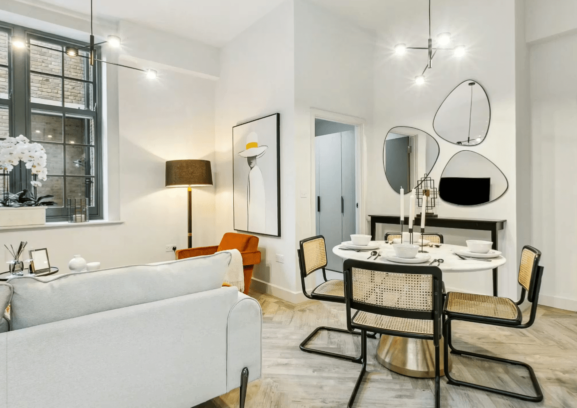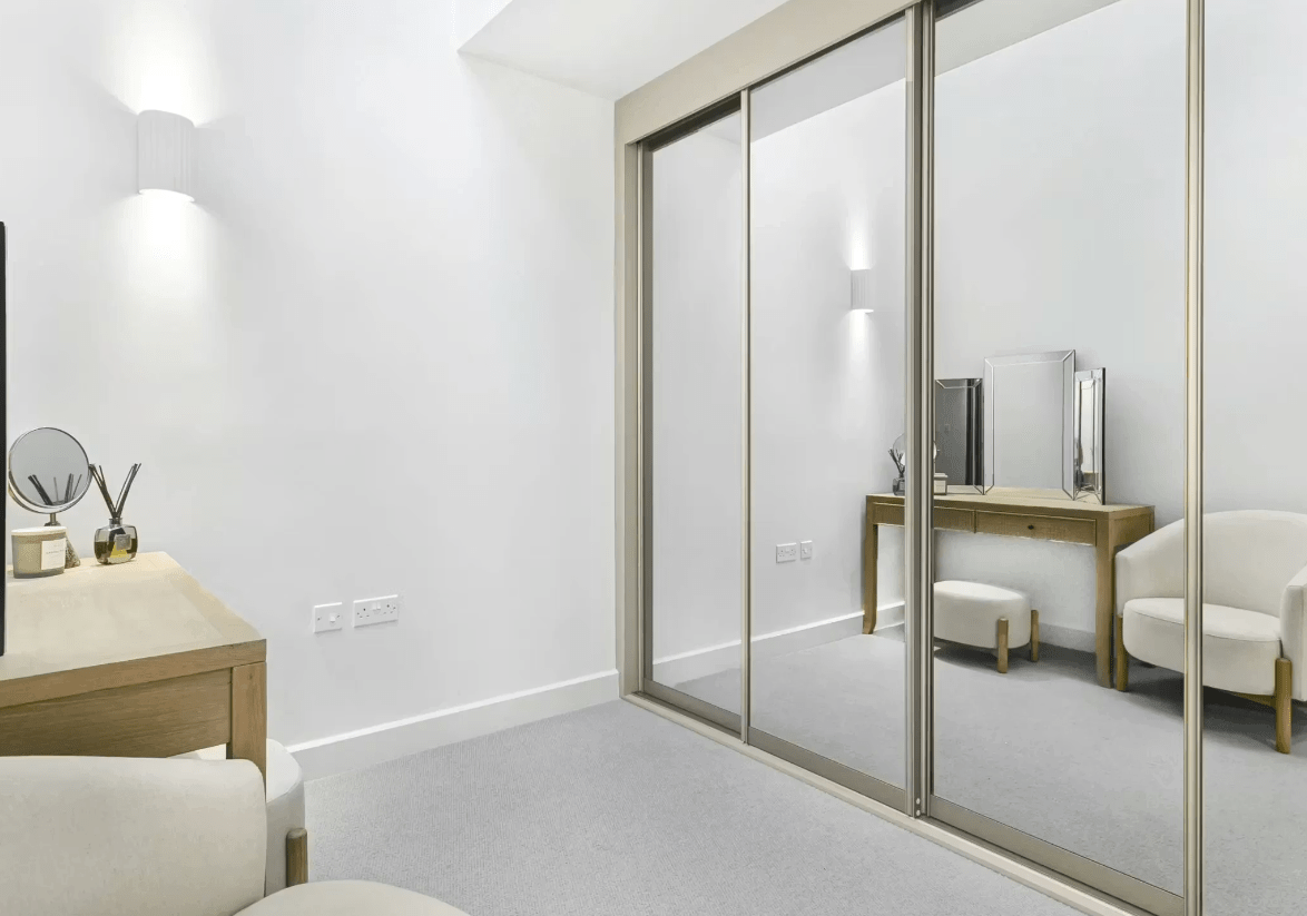 Apartment FR02 is a stylish two-bedroom home located within the newly launched Phase 3, featuring a spacious open-plan kitchen, living, and dining area with large windows overlooking the landscaped gardens and Springfield Park – the largest park created in London since the 2012 Olympics. The contemporary kitchen includes integrated appliances, offering both style and functionality. The principal bedroom benefits from fitted wardrobes, a dedicated space ideal for a desk or work-from-home area, and a modern en-suite bathroom. A well-appointed family bathroom with a shower serves the second bedroom and guests. Thoughtfully designed storage, including a store cupboard and utility space, completes this elegant and practical apartment.